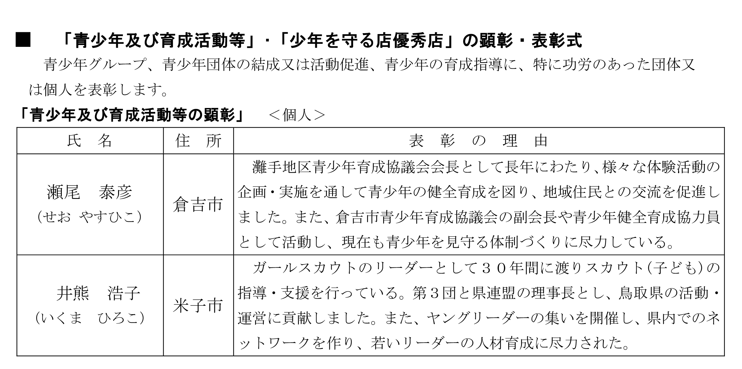 「鳥取県の青少年施策について」
